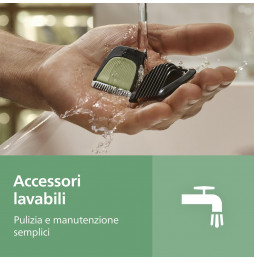 | Principio attivo | Include: regolacapelli lavabile serie 5000, spazzolina per la pulizia, 1 pettine regolabarba, 2 pettini per capelli (lunghi e corti), astuccio morbido e manuale utente |